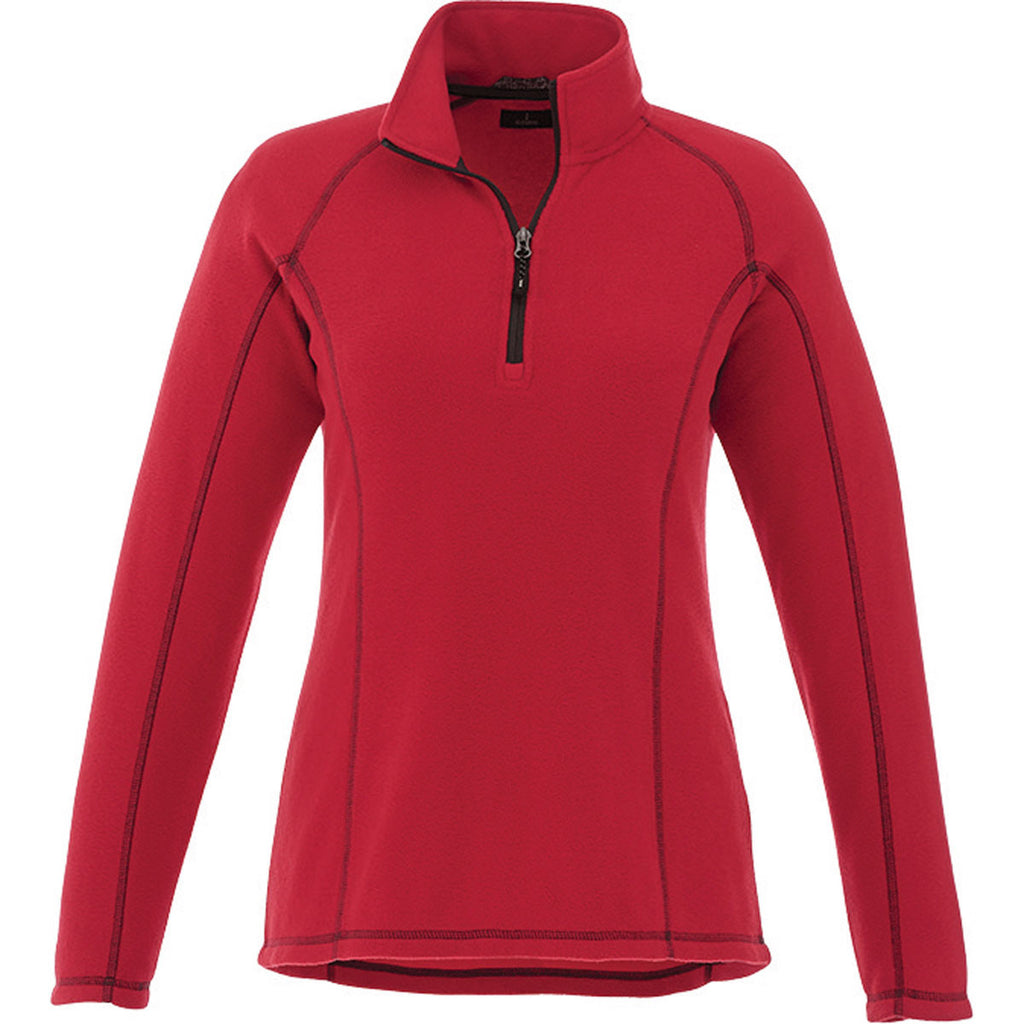 When you want to go from indoors to outdoors to indoors back again, there are few items more versatile than the quarter zip. But the Elevate Women's Team Red Bowlen Polyfleece Quarter Zip you see here is not just another item on the rack. It's comfortable, thanks to the quality of the fabric, and it's flexible enough to be worn in a variety of situations. And when you add on your custom logo to that prospect, you see how this quarter zip can function just as well as a company uniform, a promotional item, or even simply a good thing to keep around the office.Corresponding Men's Style:Elevate Men's Team Red Bowlen Polyfleece Quarter Zip