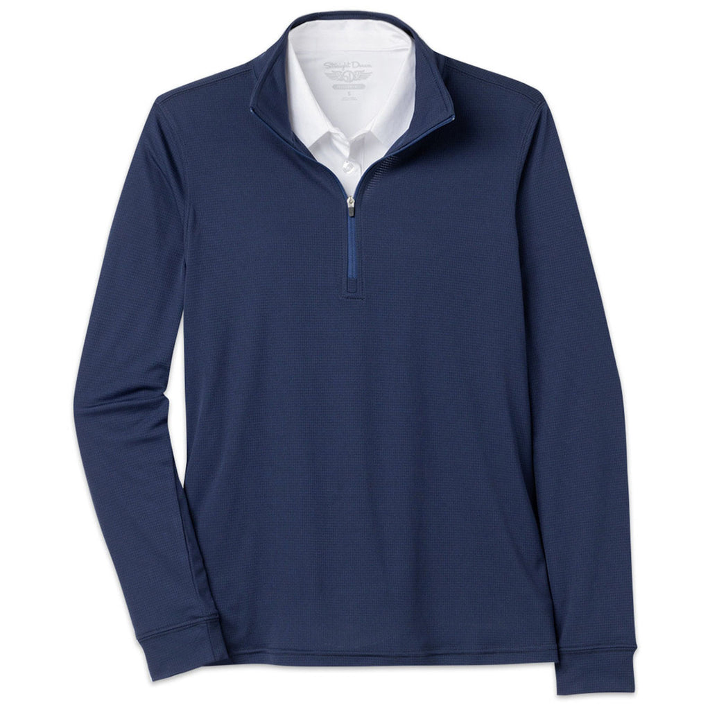 For a polished corporate layering piece, the Straight Down Women's New Indigo Aero Quarter Zip offers lightweight warmth and comfort. The soft, stretchy fabric moves easily and keeps you cozy without bulk. Its contoured fit and quarter-zip collar make it a versatile option for cool mornings, office travel, or branded apparel programs.Highlights