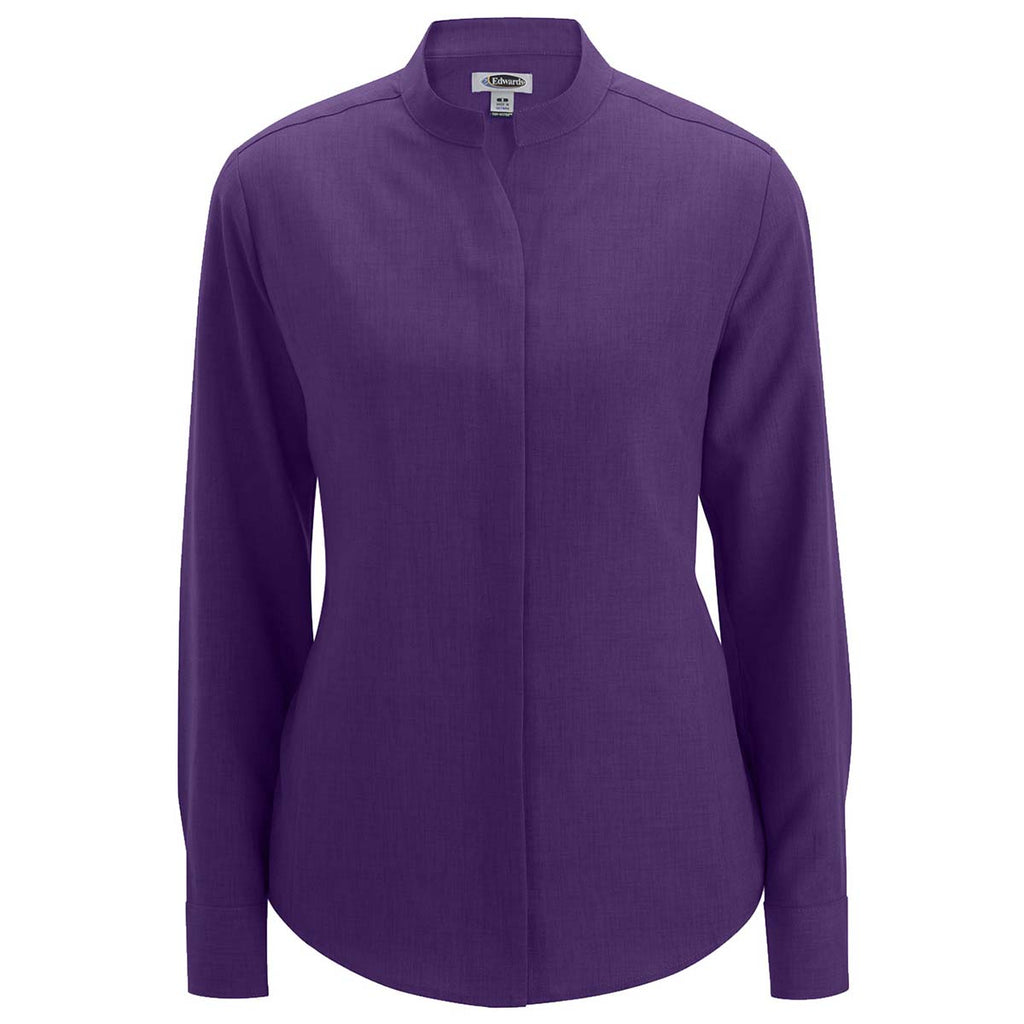 Create a custom, refined look with the Edwards Women's Purple Stand-Up Collar Shirt in a wide range of colors. Made of 100% polyester this modern fitting shirt would make excellent hospitality apparel with the clean lines, open neckline and stand-up collar. Also ideal as employee apparel for those working as wait staff or in the kitchen as the shirts are Tuff-Tested with moisture wicking and soil release fabric. These rental ready shirts can display your company logo or embroidered corporate brand with pride. Easy to launder, these shirts will stand the test of time and repeated use.Highlights