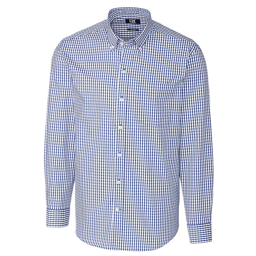 The Cutter & Buck Men's Tour Blue Tall Long Sleeve Epic Easy Care Stretch Gingham Shirt makes a unique and fashionable canvas for your company's logo. The details make it look great on its own, although the shirt also works alongside a vest or other item you may use for a corporate uniform. The comfortable design includes a chest patch pocket, double pleats around its surface, and a button-down collar. The cuffs on the sleeves keep them intact without them riding up on anyone's arms. Order this as a professional outfit for anyone in the workplace to sport anywhere in the office.Highlights
