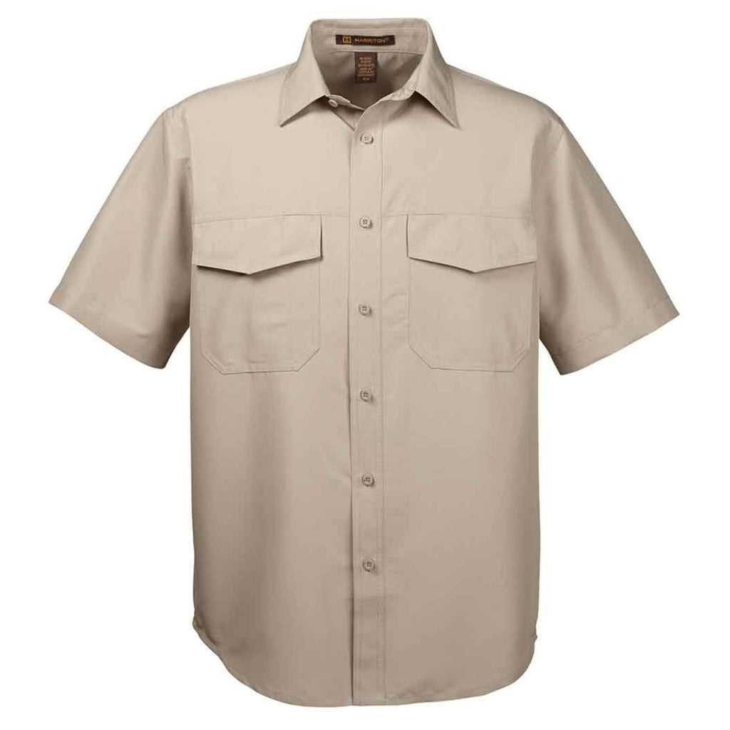 Harriton Men's Khaki Key West Short-Sleeve Performance Staff Shirt