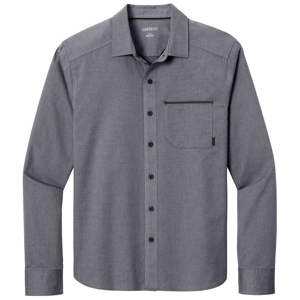 The professional world has gone urban with the custom embroidery OGIO Men's Gear Grey Urban Shirt. This distinctive custom design is made with marled cotton, poly yarn for a look that works for a night out or a long day at the office. Created to be worn untucked, the custom, stay cool wicking technology button up is perfect as part of a company uniform. The woven OGIO badge at the pocket and back collar display the quality of the product no matter where it is worn. Choose your embroidery of choice to add to this urban shirt and offer these as end of the year gifts or employee gifts for a job well done.