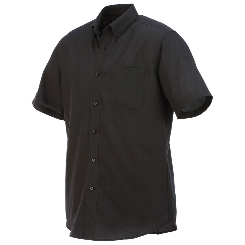 With the Elevate Men's Black Colter Short Sleeve Shirt and your custom logo your employees will look sharp and classy even during hot summer days. This poly-cotton blend features an upper patch pocket. It comes in a variety of stylish colors and is sure to be the shirt of choice during the heat. If you want to give your employees a gift they will surely use, choose the Elevate Men's Black Colter Short Sleeve Shirt. Wherever they go, they will advertise your brand, so be sure you include this item in your next corporate giveaway. Advertising has never been easier. Your employees will appreciate this high-quality gift.Corresponding Women's Style: Elevate Women's Black Colter Short Sleeve Shirt