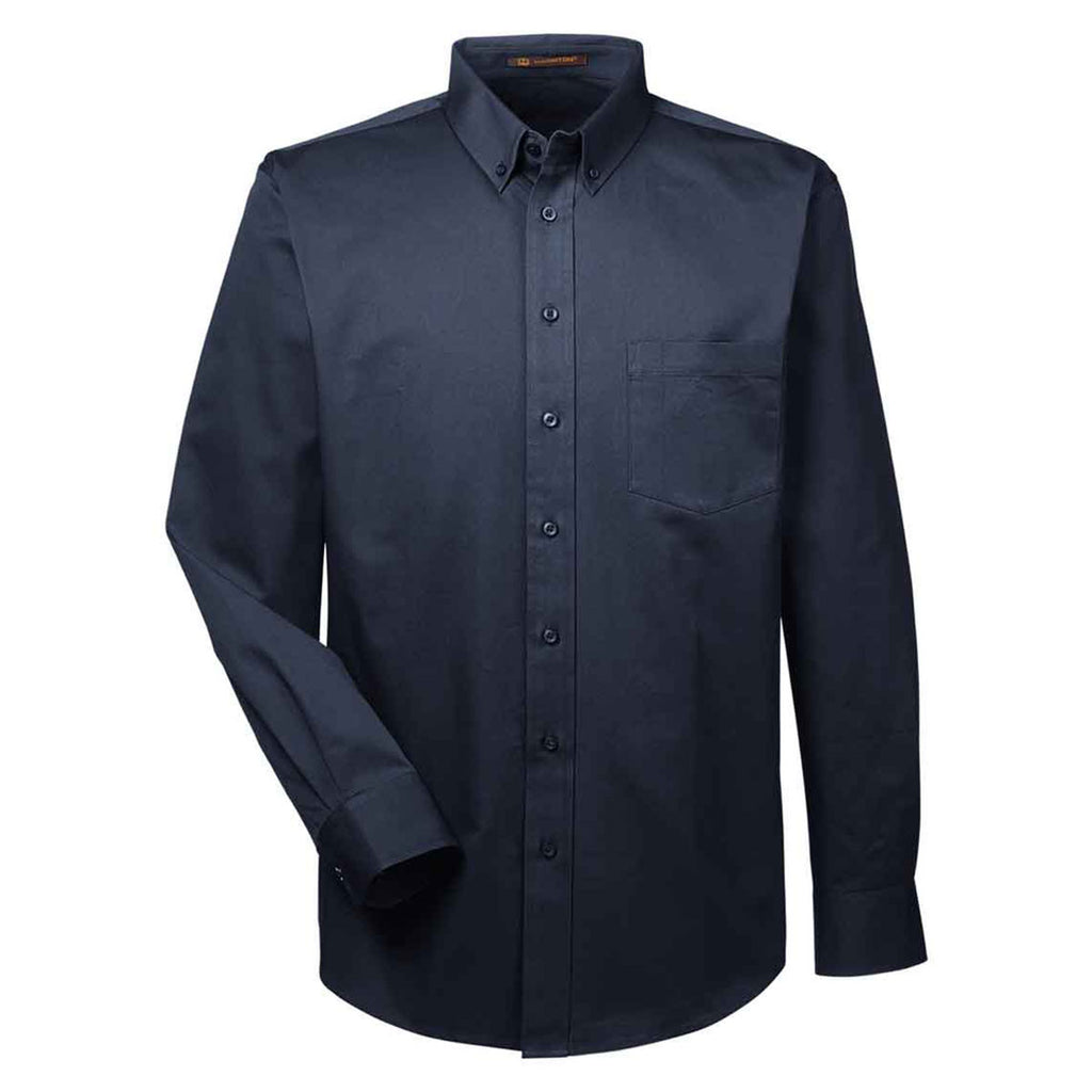 Harriton Men's Dark Navy Foundation 100% Cotton Long-Sleeve Twill Shirt with Teflon