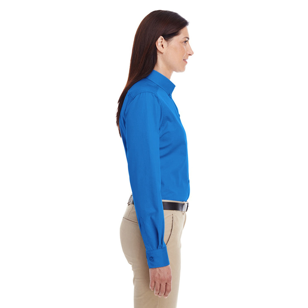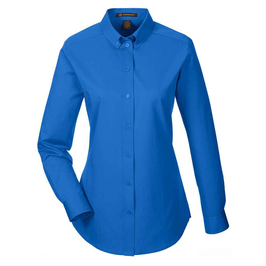 Harriton Women's French Blue Foundation 100% Cotton Long-Sleeve Twill Shirt with Teflon