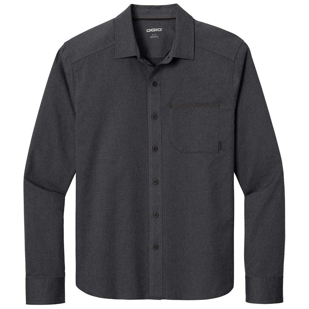 The professional world has gone urban with the custom embroidery OGIO Men's Blacktop Urban Shirt. This distinctive custom design is made with marled cotton, poly yarn for a look that works for a night out or a long day at the office. Created to be worn untucked, the custom, stay cool wicking technology button up is perfect as part of a company uniform. The woven OGIO badge at the pocket and back collar display the quality of the product no matter where it is worn. Choose your embroidery of choice to add to this urban shirt and offer these as end of the year gifts or employee gifts for a job well done.