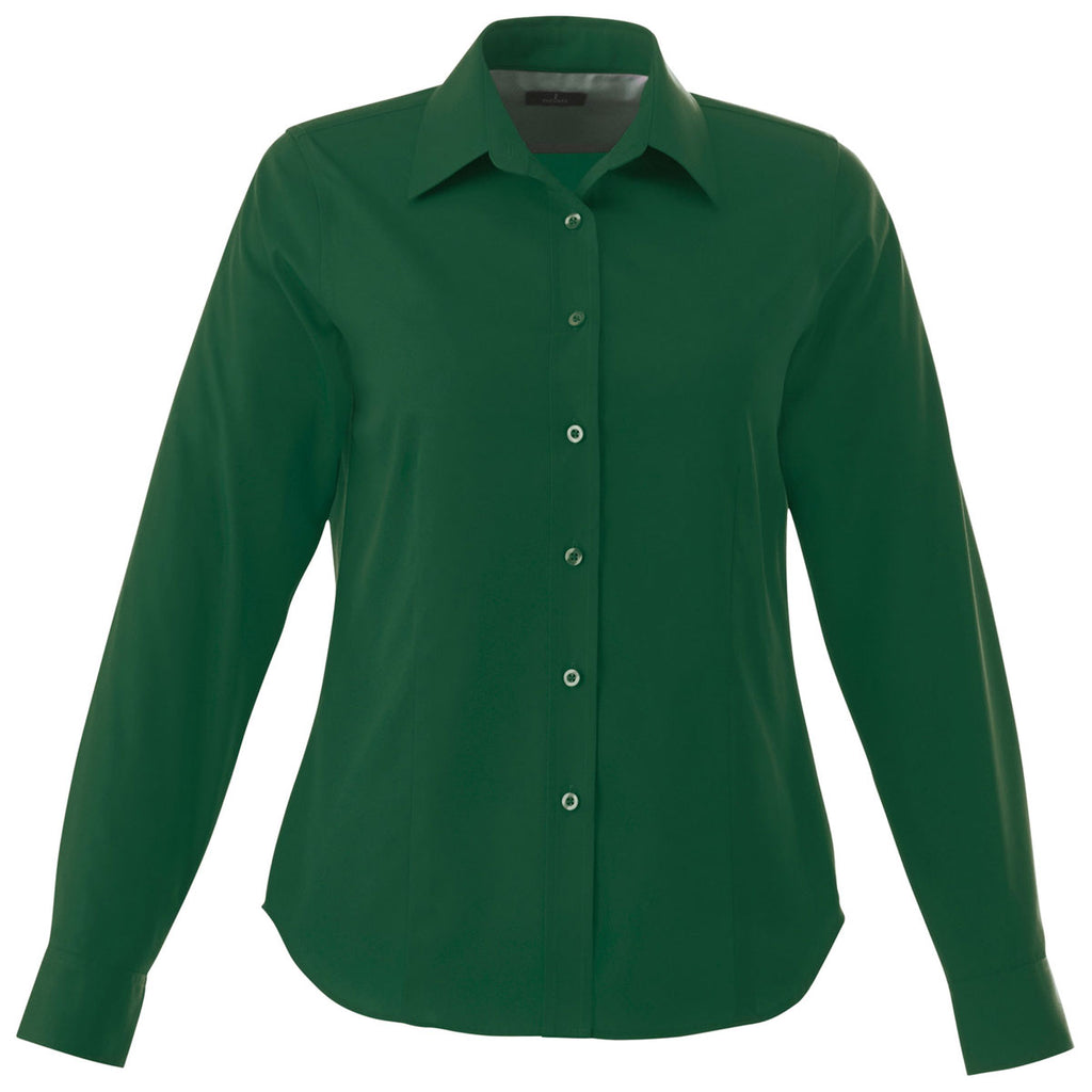 Whether you want a new uniform for your employees or just a present for them, the Elevate Women's Forest Green Wilshire Long Sleeve Shirt branded with your custom logo is an ideal choice. It has shaped seams and a tapered waist for a more flattering fit. It is also a decoration-friendly design! It is also available in wide range of colors, so you can choose the one that perfectly matches your company logo. Whenever your employees want to look sharp, they will reach for the Elevate Women's Forest Green Wilshire Long Sleeve Shirt. Advertise your brand in a modern way. Choose this high-quality shirt for your next corporate giveaway.Corresponding Men's Style: Elevate Men's Forest Green Wilshire Long Sleeve Shirt
