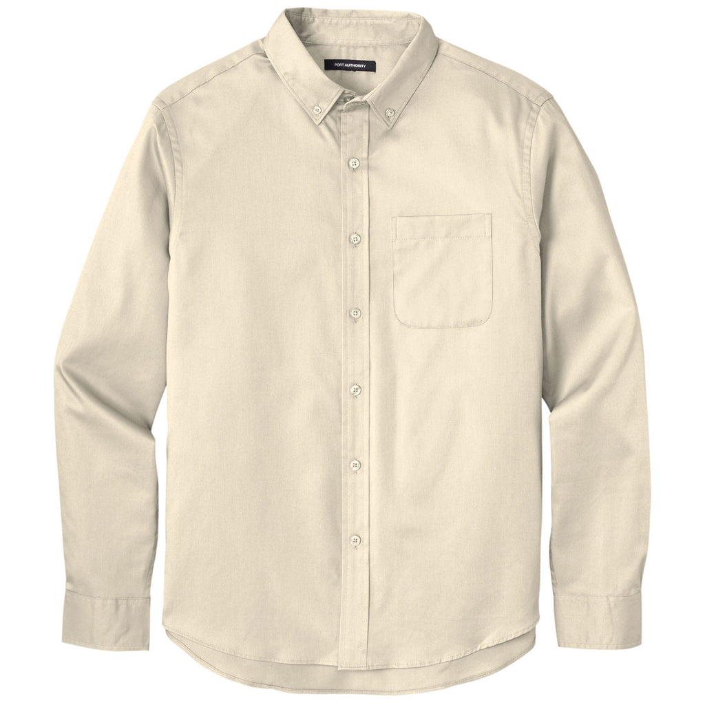 Port Authority Men's Ecru Long Sleeve SuperPro React Twill Shirt
