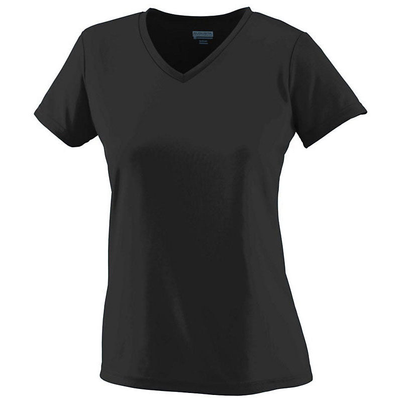 The logoed Augusta Sportswear Women's Black Wicking-T-Shirt is the perfect shirt to wear to the gym or when taking part in all of your favorite outdoor activities. Available in 20 different vivid colors, this attractive t-shirt comes complete with many must-have features, including wicking capabilities, v-neck collar, heat sealed label, double-needle hem sleeves and bottom, and more. With your company logo set in embroidery on this soon-to-be favorite shirt, you have a new employee apparel option or clothing item to hand out to guests at trade shows, recruiting events and corporate golf events.Corresponding Men's Style: Augusta Sportswear Men's Black Wicking T-Shirt