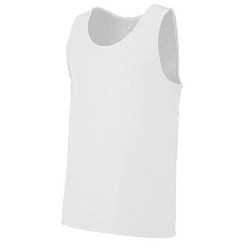 The custom logo Augusta Sportswear Men's White Training Tank provides a comfortable fit, with your choice of 17 vibrant colors from which to choose your favorite. The features of this tank top make it a sure bet, with attributes such as moisture-wicking capabilities, heat sealed label, self-fabric binding around the neck and armholes, and a double-needle hem bottom. Add your company screen print logo to the front of this men's training tank top and you have an excellent giveaway gift option for upcoming corporate events, such as trade shows, recruiting events and golf events.Corresponding Women's Style: Augusta Sportswear Women's White Training Tank