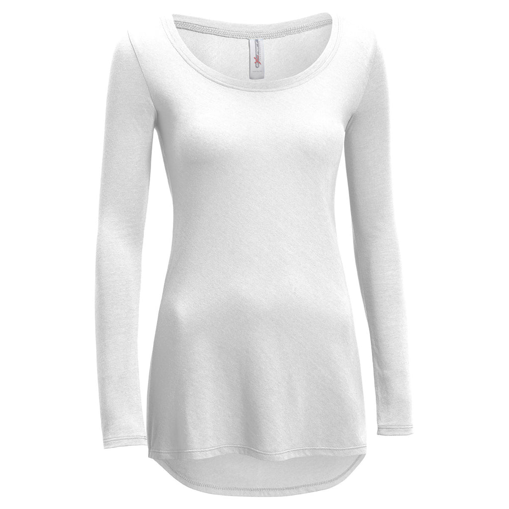 Add motivation to your gym routine with simple yet practical Expert Women's White TriTec Long Sleeve Scoop Neck Tee. Made from a soft, micropoly-fused cotton blend, this active wardrobe favorite promises a long-lasting comfort. Long sleeve, scoop neck, feminine contour and drop hem enliven this t-shirt. Its layer-friendly form makes it a key to unlock countless sartorial opportunities. Equipped with moisture-wicking technology to keep sweat at bay. Customize this high street women's fitness top with a custom logo of your event or company to create uniformity among employees, customers or event participants.The minimum order for this product is 12 pieces.