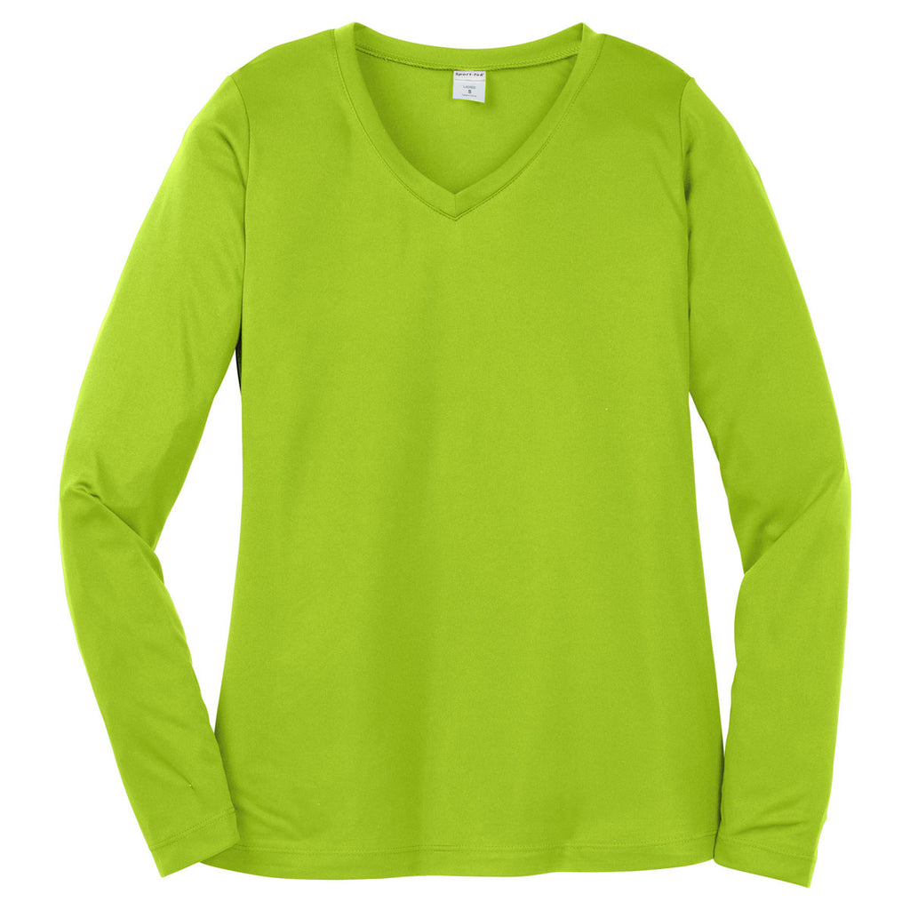 Sport-Tek Women's Lime Shock Long Sleeve PosiCharge Competitor V-Neck Tee
