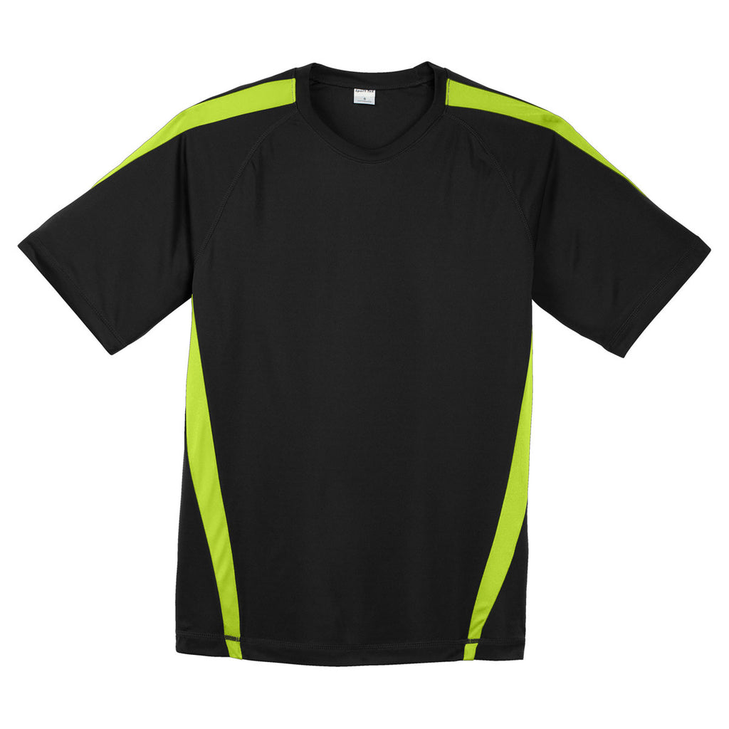 Sport-Tek Men's Black/Lime Shock Colorblock PosiCharge Competitor Tee