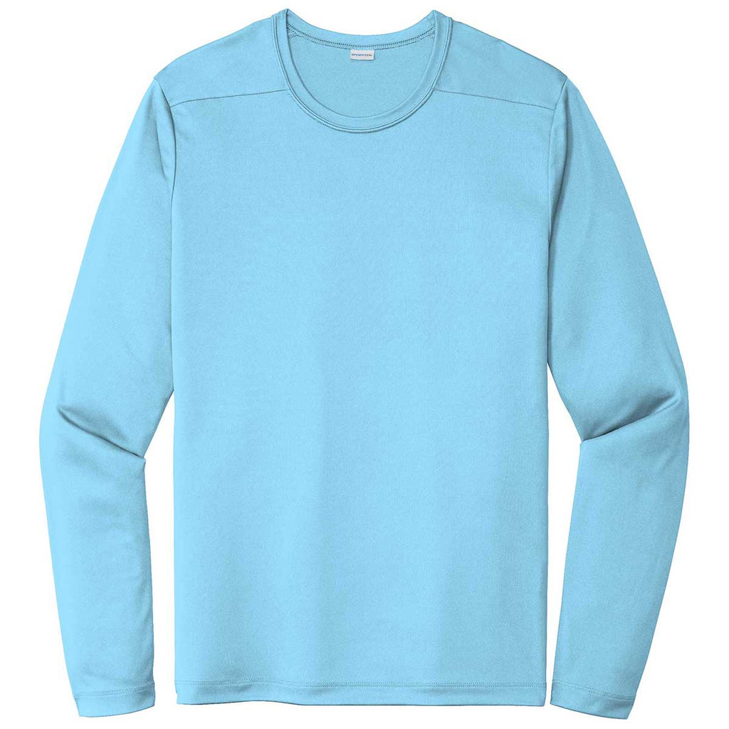 Be ready for the changing weather with the Sport-Tek Men's Light Blue Posi-UV Pro Long Sleeve Tee. Your company logo will stand out on this long sleeve tee complete with removable tag and set-in sleeves. Perfect for fall golf trips with a UPF rating of 50, this shirt will keep you cool with moisture wicking technology or warm on those cooler days with long sleeves. Add a screen print of your company design to use for team events or to give away at corporate events. Ideal for layering or wearing alone for nearly any occasion, this long sleeve tee is a must have.Highlights
