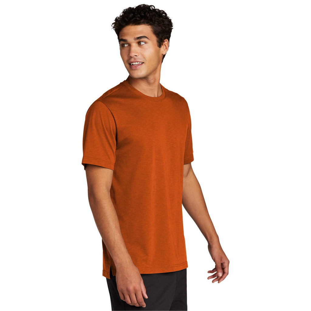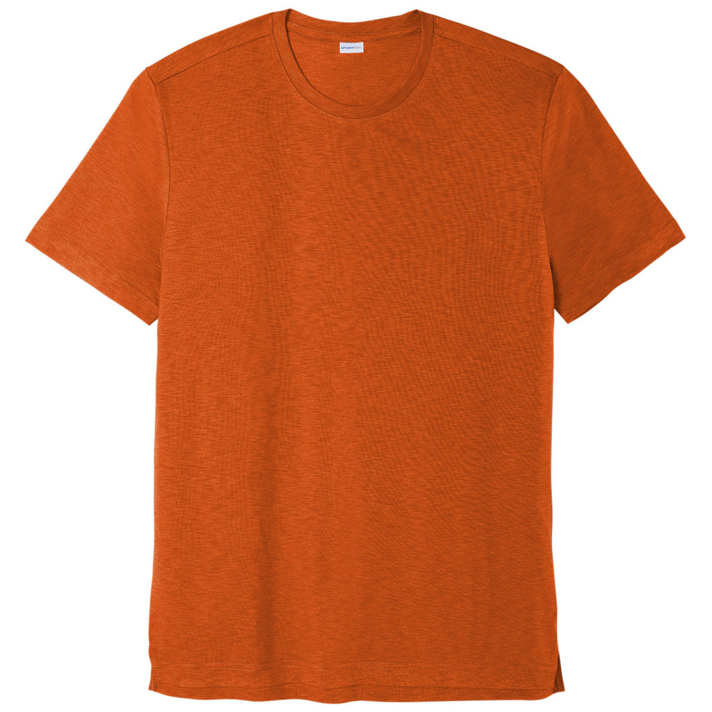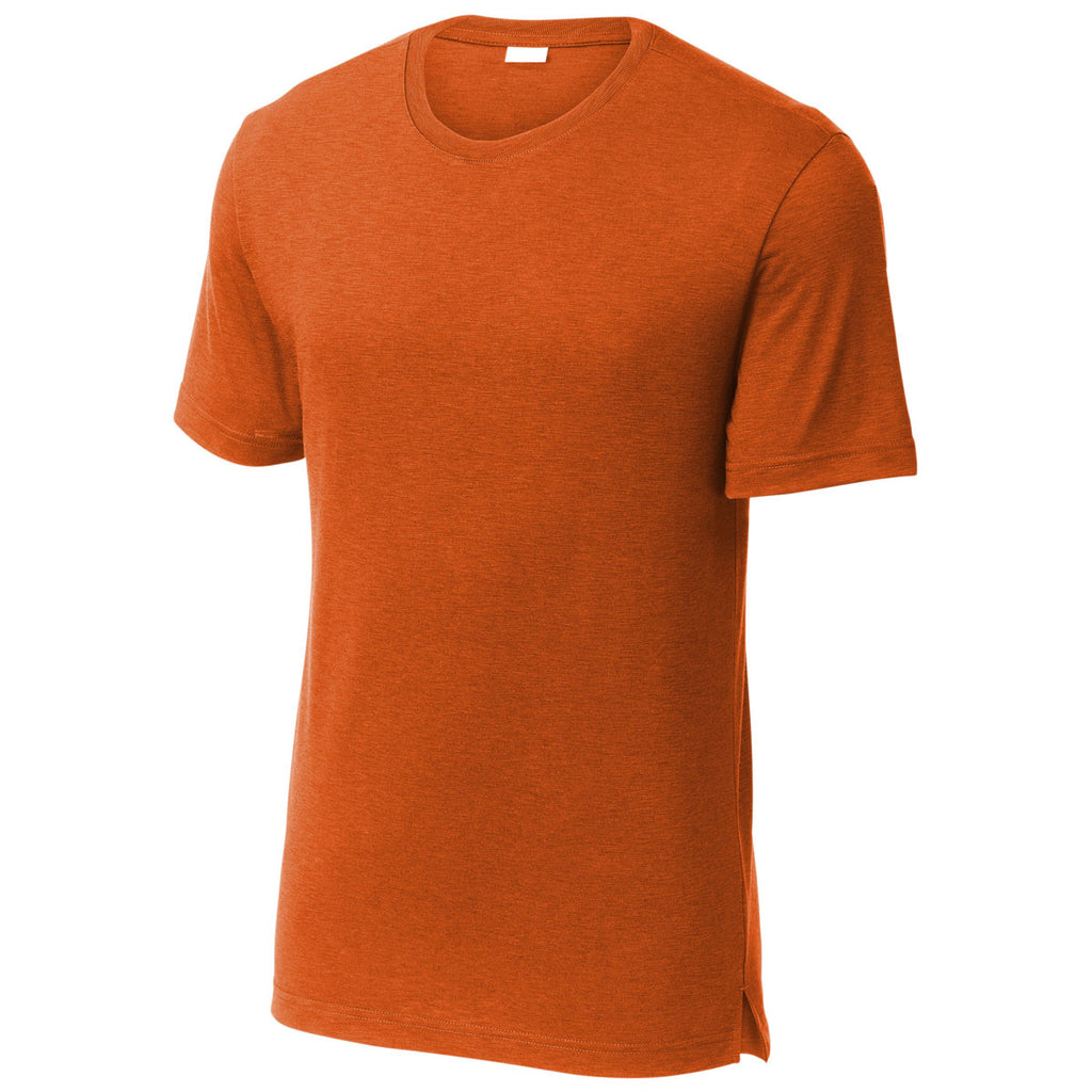 Design your screen print for the Sport-Tek Men's Texas Orange PosiCharge Strive Tee that was inspired by current streetwear. The elevated heathered tee is moisture wicking and comes in vibrant color options. The lightweight, short-sleeve tee offers cotton with PosiCharge technology with set0in sleeves and a tearaway label. Add a custom logo to create your own section of streetwear for your logoed apparel line or a company logo to use as employee apparel for those working in a trendy environment. Great for layering or wearing alone, this tee can go from home to an evening with friends in a heartbeat.