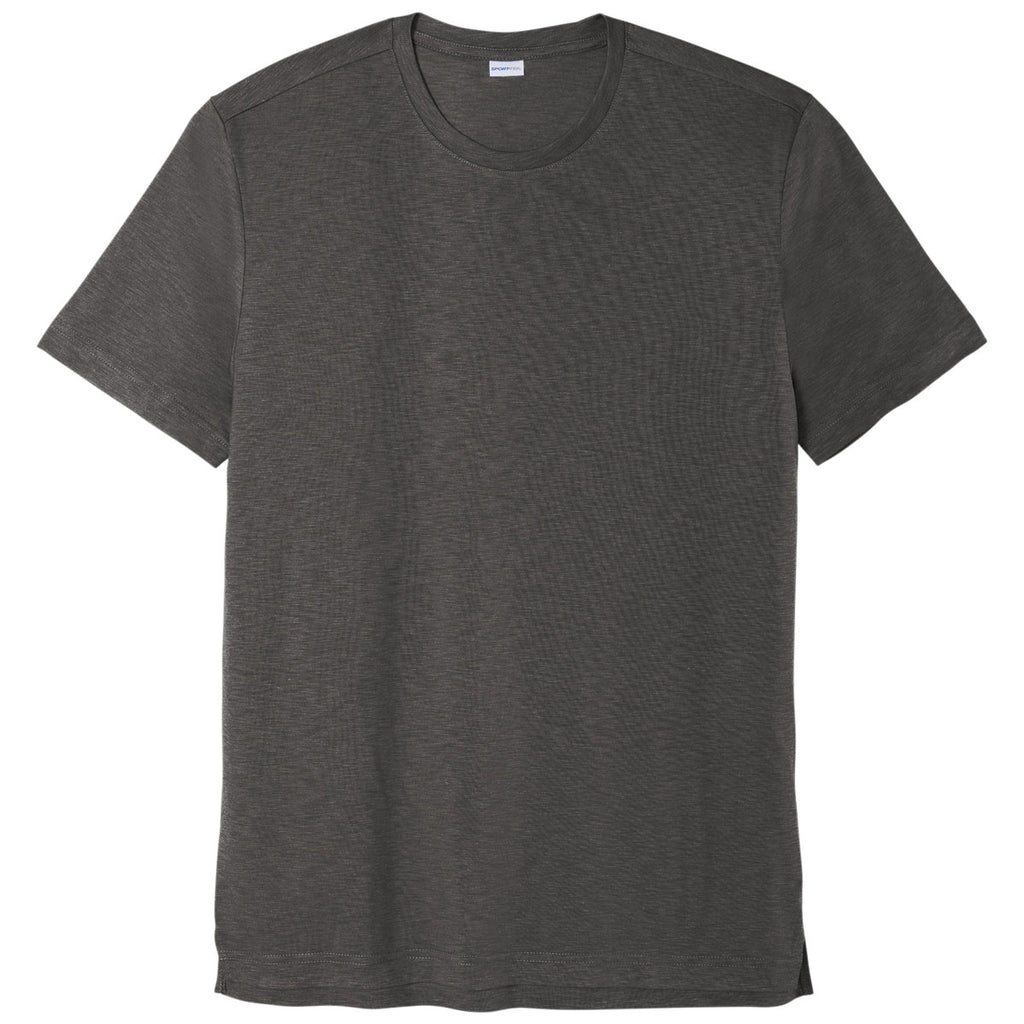 Design your screen print for the Sport-Tek Men's Graphite PosiCharge Strive Tee that was inspired by current streetwear. The elevated heathered tee is moisture wicking and comes in vibrant color options. The lightweight, short-sleeve tee offers cotton with PosiCharge technology with set0in sleeves and a tearaway label. Add a custom logo to create your own section of streetwear for your logoed apparel line or a company logo to use as employee apparel for those working in a trendy environment. Great for layering or wearing alone, this tee can go from home to an evening with friends in a heartbeat.Highlights