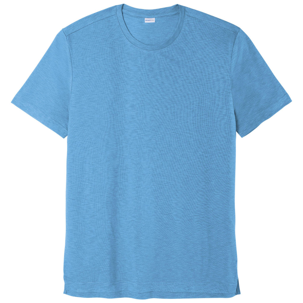 Design your screen print for the Sport-Tek Men's Carolina Blue PosiCharge Strive Tee that was inspired by current streetwear. The elevated heathered tee is moisture wicking and comes in vibrant color options. The lightweight, short-sleeve tee offers cotton with PosiCharge technology with set0in sleeves and a tearaway label. Add a custom logo to create your own section of streetwear for your logoed apparel line or a company logo to use as employee apparel for those working in a trendy environment. Great for layering or wearing alone, this tee can go from home to an evening with friends in a heartbeat.Highlights