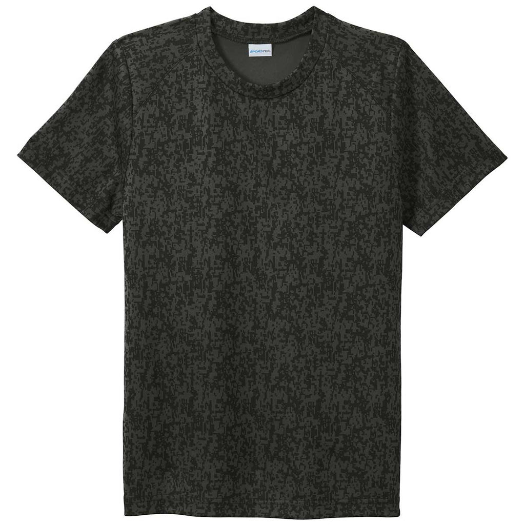 A subtle digi camo pattern on a custom Sport-Tek Youth Black PosiCharge Digi Camo Short Sleeve Tee will give your youngsters a look that cannot be beat. Add a custom logo to use for team events or a corporate logo for sponsors of a particular organization. The fun, unique colorful patterns will help your young one stand out in a crowd. The 100% polyester interlock offers moisture wicking performance for those long days at play. Easy to layer, this tee is perfect for wearing under a hoodie or over a jersey when warming up.Highlights