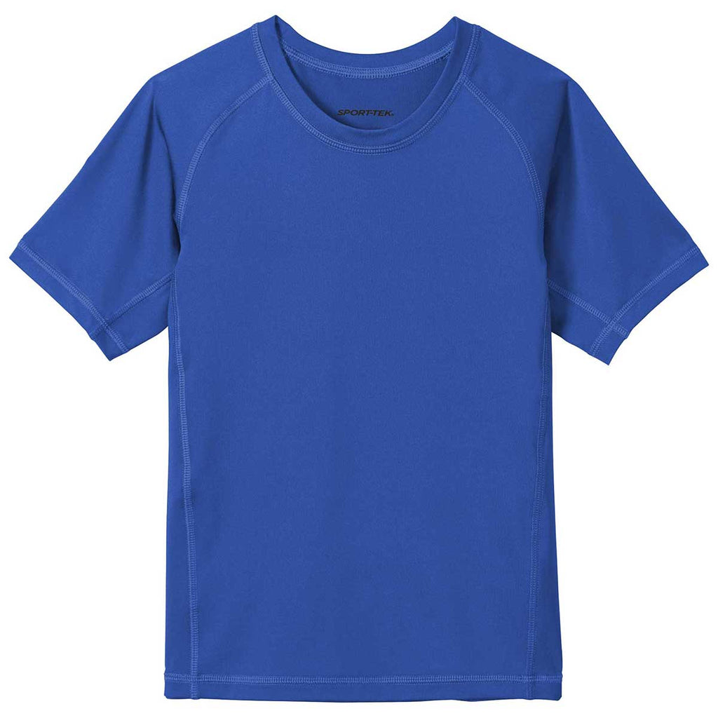 Play with sun protection in a custom Sport-Tek Youth True Royal Short Sleeve Rashguard Tee. Created from a 90/10 poly/spandex stretch jersey, this trim, yet comfortable fitting tee is perfect for time in the pool, at the beach, or a water park. Add a custom logo to use these for team events at school or a local organization. Add a corporate logo to demonstrate sponsorship or create a custom design for separate teams. With a UPF rating of 50 this tee will protect children from the sun throughout the day. Raglan sleeves, underarm gussets, and a tag free label mean this tee will be easy to wear no matter what activities a day holds.Highlights