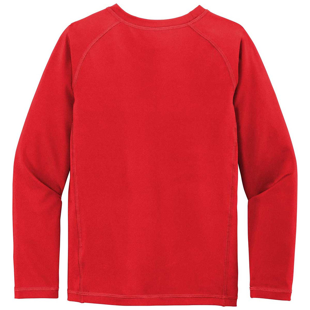 Show off your backstroke in a custom logo Sport-Tek Youth True Red Long Sleeve Rashguard Tee. Make sure your children are well protected in the long sleeve 90/10 poly/spandex stretch jersey tee with a UPF rating of 50. Add a custom logo or design, heat transferred on, to use for team events or organizational trips. Due to PosiCharge technology, the logo will stay vibrant long term when compared to other brands. Add names, team mascots, or a custom design to create just what is needed for any days spent in, on, or around the water. Great for sports, water parks, boating, or trips to the beach, this long sleeve tee does not restrict movement and offers great protection.Highlights