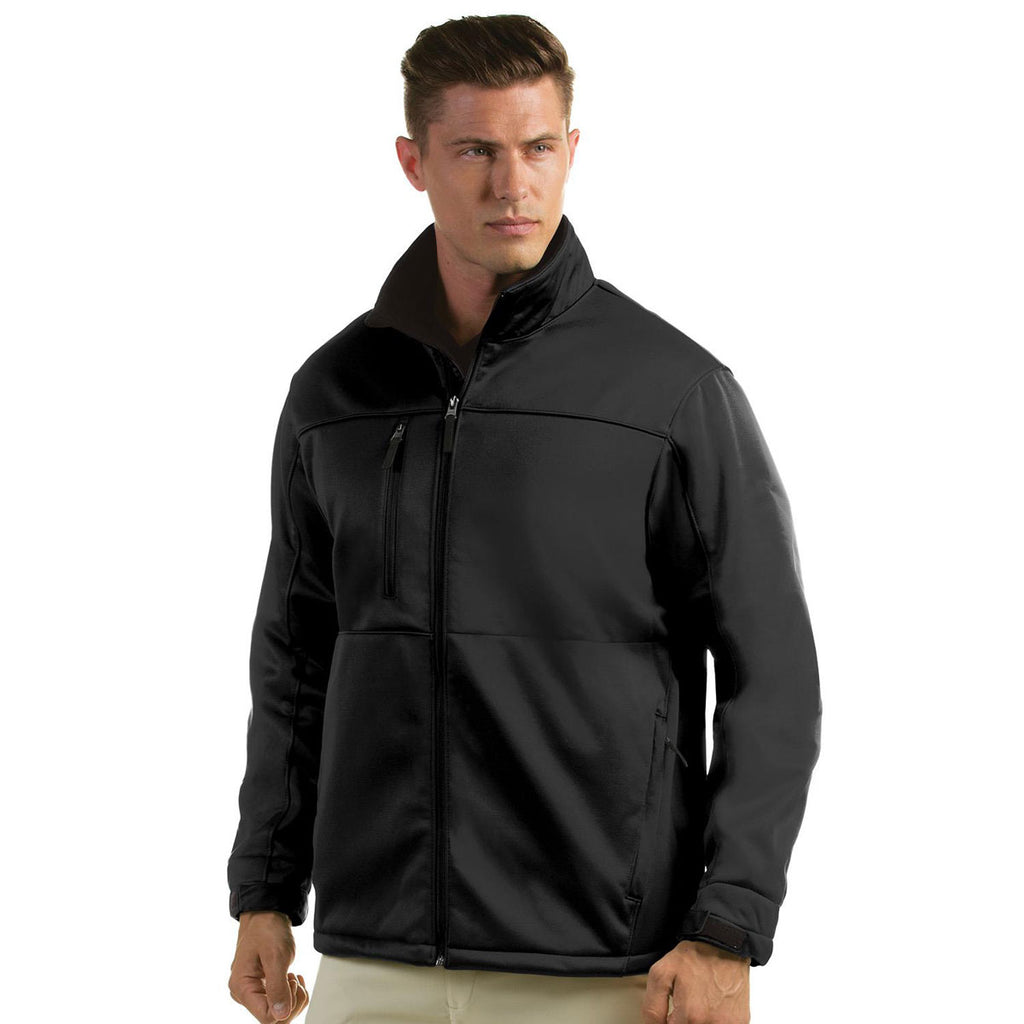 Raise the bar for corporate embroidered golf apparel by selecting the embroidered Antigua Men's Black Traverse Jacket. Water resistant fabric allows you to play through rain, without having to deal with the discomfort caused by soaked clothes. The hidden fleece storm cuff detail not only enhances the appearance of the jacket, the design feature also keeps the arms warm to maximize your golf swing power. Use the mock neck to protect your neck and shoulders from cool wind gusts. Attach a custom logo on the large imprint area to reach more customer prospects at industry events and company golf tournaments.