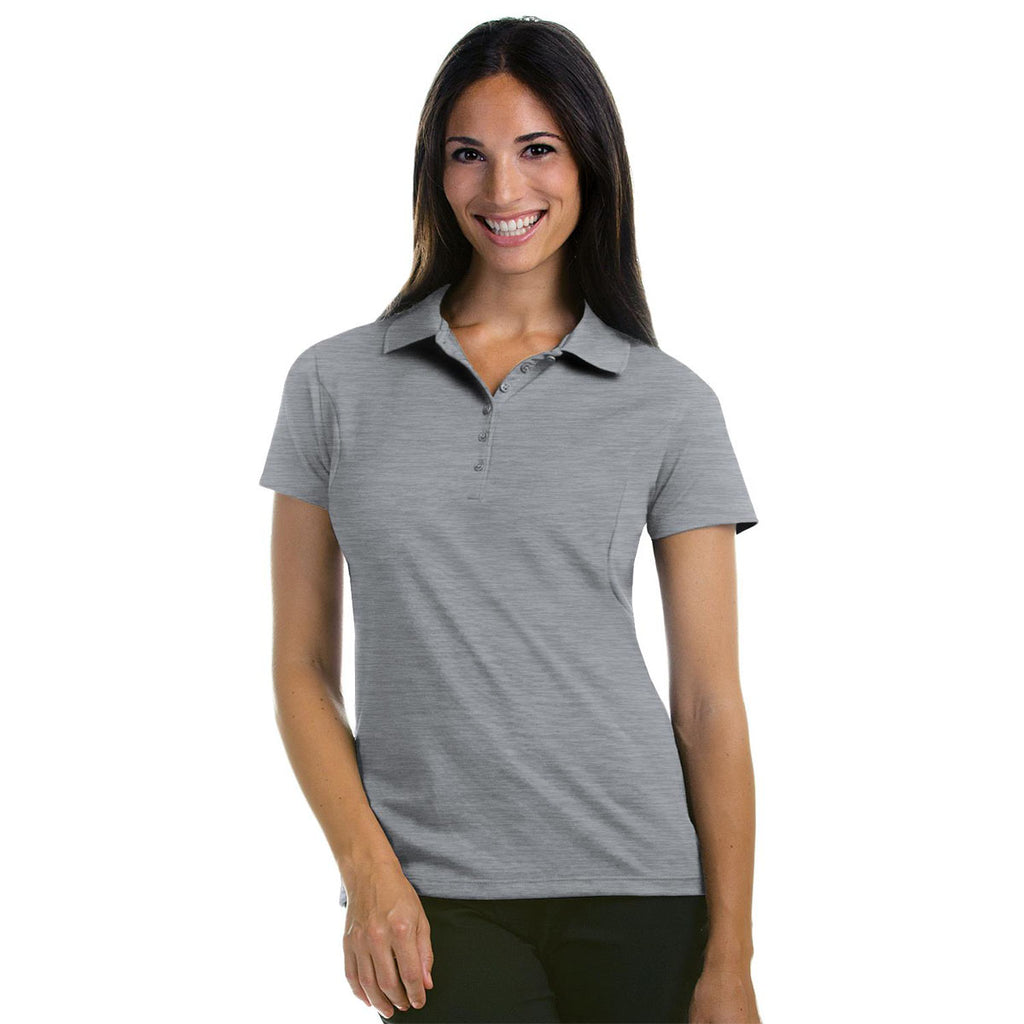 When other golfers wear down on the back nine, you will surge past them into the lead because of the gentle comfort offered by the embroidered Antigua Women's Grey Heather Pique Xtra-Lite Polo. The lightweight fabric remains dry and comfortable throughout the day because of moisture management technology. Display the custom logo attached on the large imprint area, and take your brand recognition to the next level. With a logo, you demonstrate the pride you have in your company and spread the word about your business around the community. Wear the versatile polo for work and play.Corresponding Men's Style: Antigua Men's Grey Heather Pique Xtra-Lite Polo