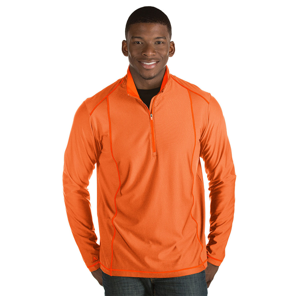 If you're looking for your next custom quarter zip look no further than the Antigua Men's Mango Heather Tempo Quarter Zip. Wear the versatile layering piece to work and after the workday when you tee off at your favorite golf course. The jacket is comfortable for all day wear, and has high quality construction to ensure it keeps its look after frequent use. Add your company on the large imprint area to take your brand to the next level. Your employees are sure to love this Antigua quarter zip. Your brand awareness will benefit from the daily wear of this embroidered layering piece.Corresponding Women's Style: Antigua Women's Mango Heather Tempo Fine Stripe Quarter Zip