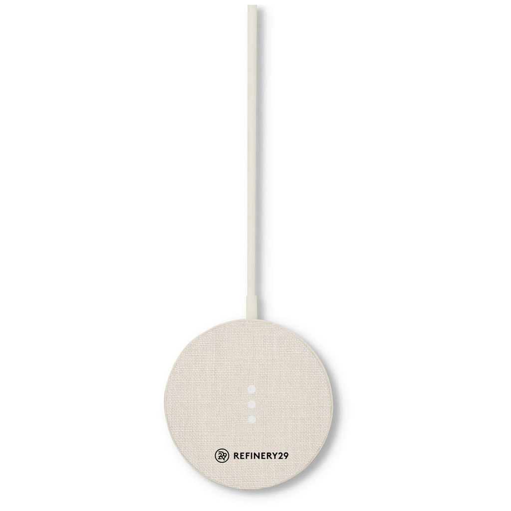 Take any desktop of office space to the next level by adding your company's custom logo to the Courant Natural MAG 1: Essentials low profile charger. Covered in a designer-quality Belgian Linen fabric, this wireless charger works with compatible devices including the iPhone 12 and iPhone 13.