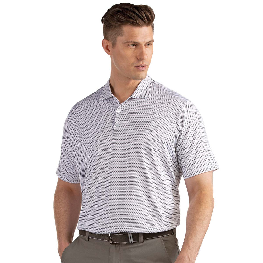The logoed Antigua Men's White/Black Multi Boardwalk Polo is a stylish shirt which comes in six fashionable colors. With a 95% polyester/5% spandex blend, this polo shirt combines comfort and ease of movement in one. Other features of the Boardwalk polo include Desert Dry moisture wicking capabilities, multicolor mini jacquard pattern, three button closure, self-fabric collar, and side slits. When you add your embroidery company logo to this stylish polo shirt, you have an advertising clothing item which everyone will want. Purchase these shirts in bulk and hand them out to employees as corporate apparel items or as giveaway gifts at your upcoming golf events.Highlights