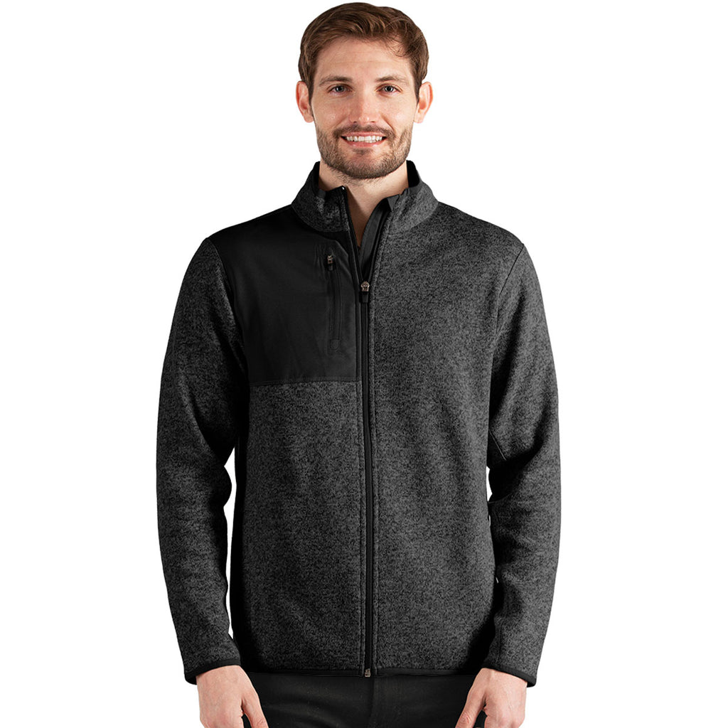 The custom logo Antigua Men's Black Heather Fortune Full Zip is a comfortable top to add to your promotional product inventory. Add your embroidery company logo to the top and hand it out at upcoming corporate golf events.Highlights