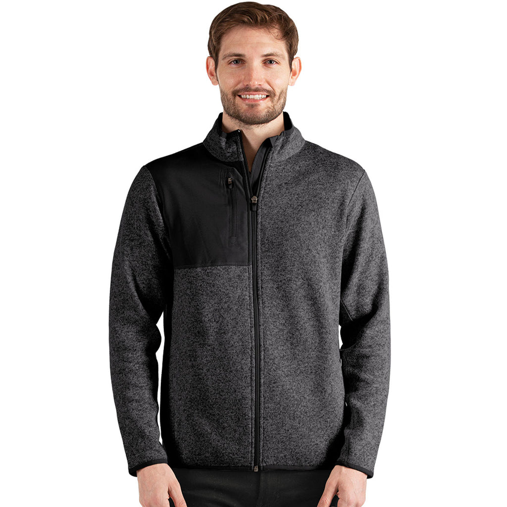 The custom logo Antigua Men's Smoke Heather Fortune Full Zip is a comfortable top to add to your promotional product inventory. Add your embroidery company logo to the top and hand it out at upcoming corporate golf events.Highlights