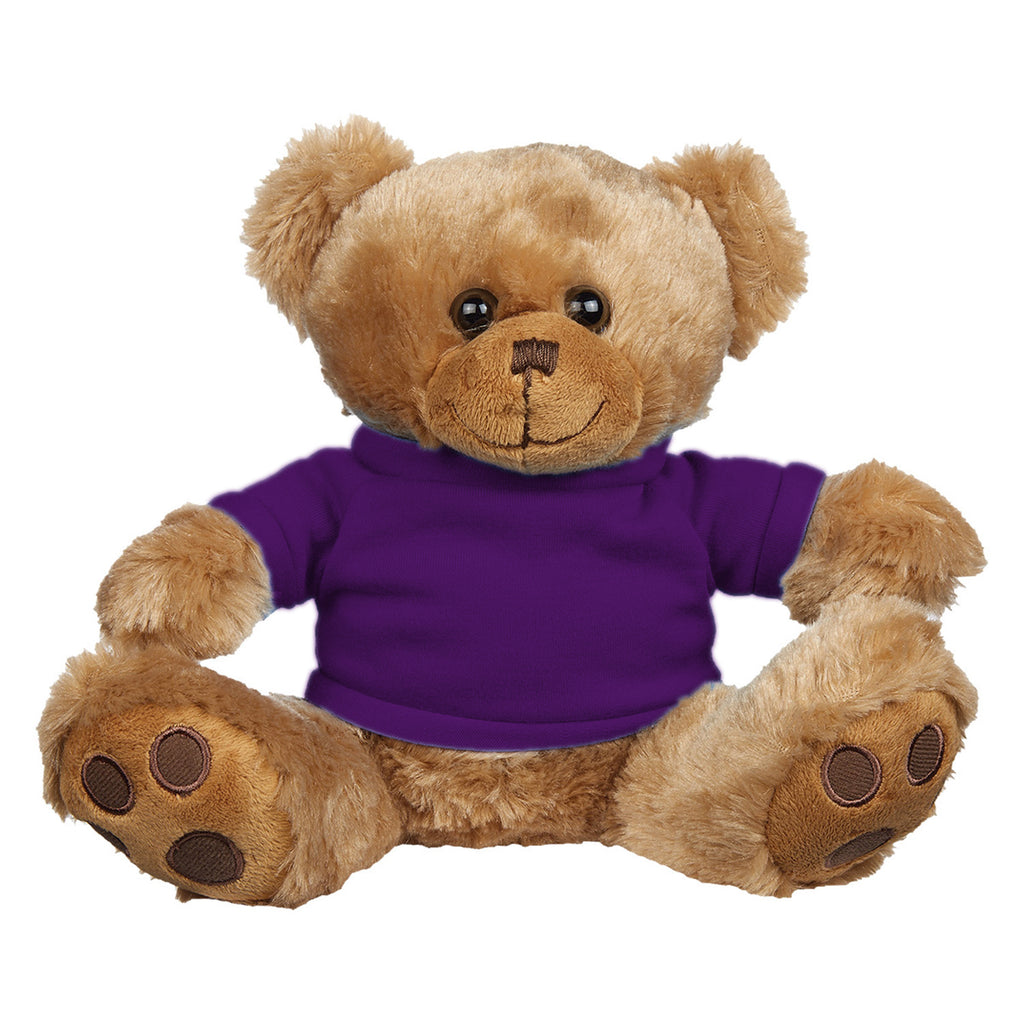 Hit 8 1/2" Big Paw Brown Bear with Purple T-ShirtThe minimum order for this product is 50 pieces.
