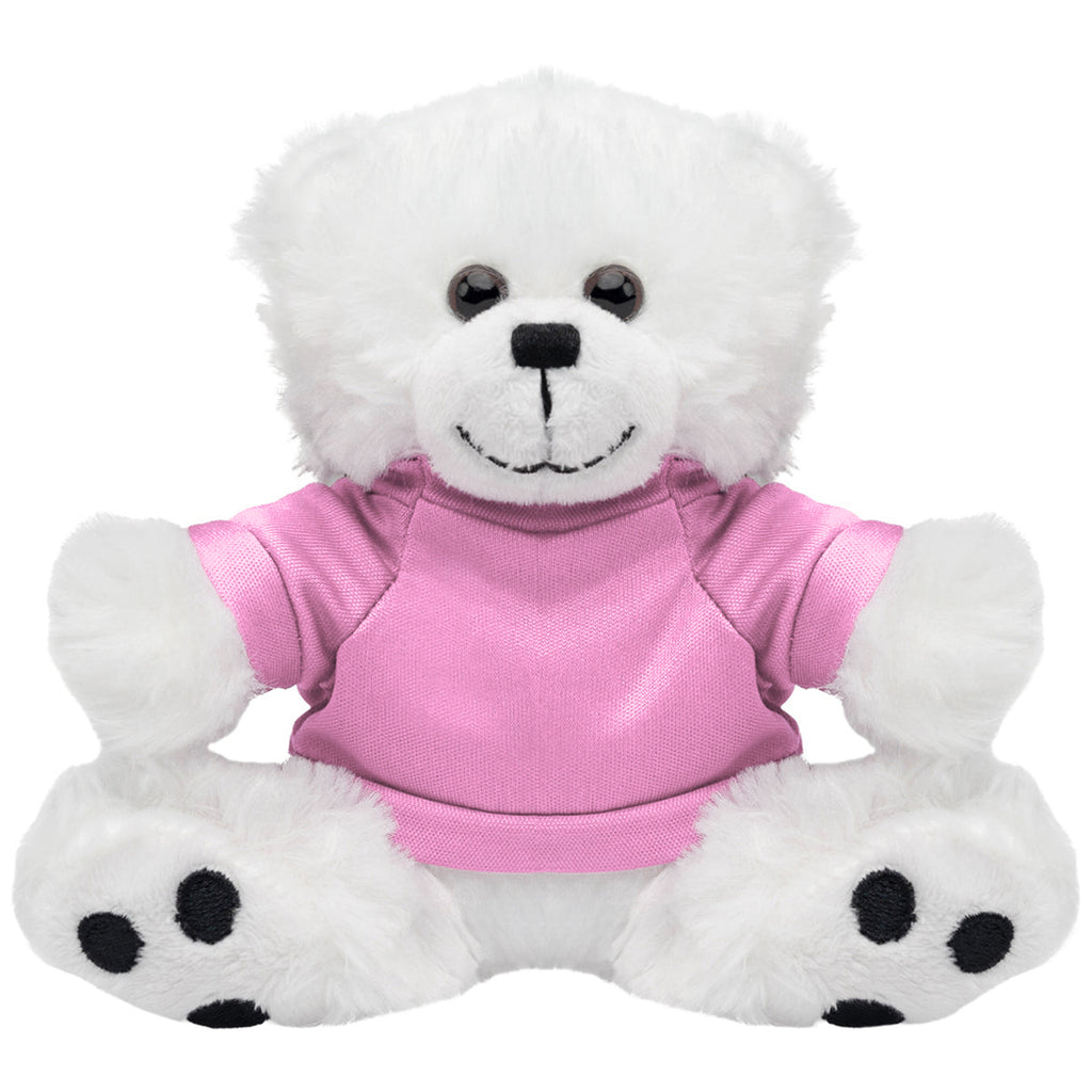 Hit 8 1/2" Big Paw White Bear with Pink T-ShirtThe minimum order for this product is 50 pieces.