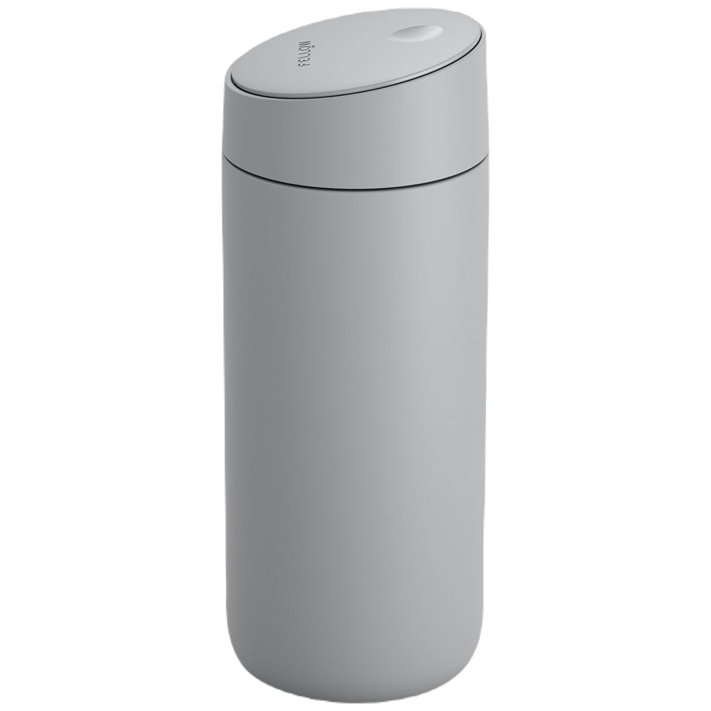 Slide into action with the Fellow Matte Grey 16 oz Carter Slide Mug. The uniquely angled lid slides open with the flick of a thumb for mid-commute coffee breaks, then effortlessly slides back securing your drink and locking in heat and flavor. Ceramic coating ensures that your drinks do not taste like metal. Add a logo on the front and create a custom product. Reach out and order the perfect travel mug for the person on the go.