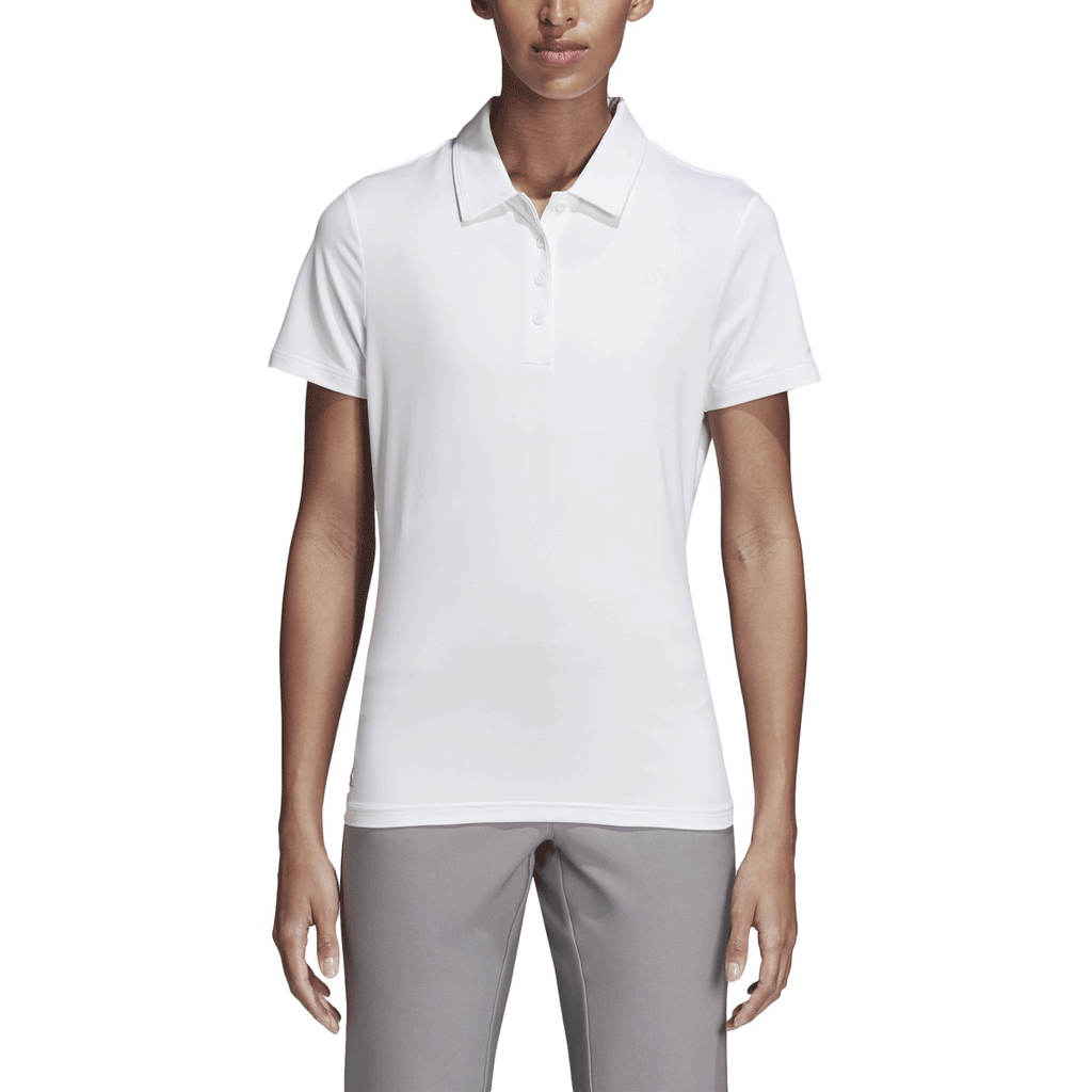 When you want a chic polo to wear on and off the golf course, choose the branded adidas Women's White Ultimate Polo. The ultimate in fashion versatility contains four-way stretch fabric to boost your agility along fairways and at the office. Designed to provide superior comfort, the mostly polyester polo handles any activity you throw at it. Ultraviolet ray protection ensures the sun never damages sensitive skin. The self collar and three-button placket present a refined appearance that gets you compliments in the clubhouse. Turn the compliments into sales by displaying your company logo added on the large imprint area.