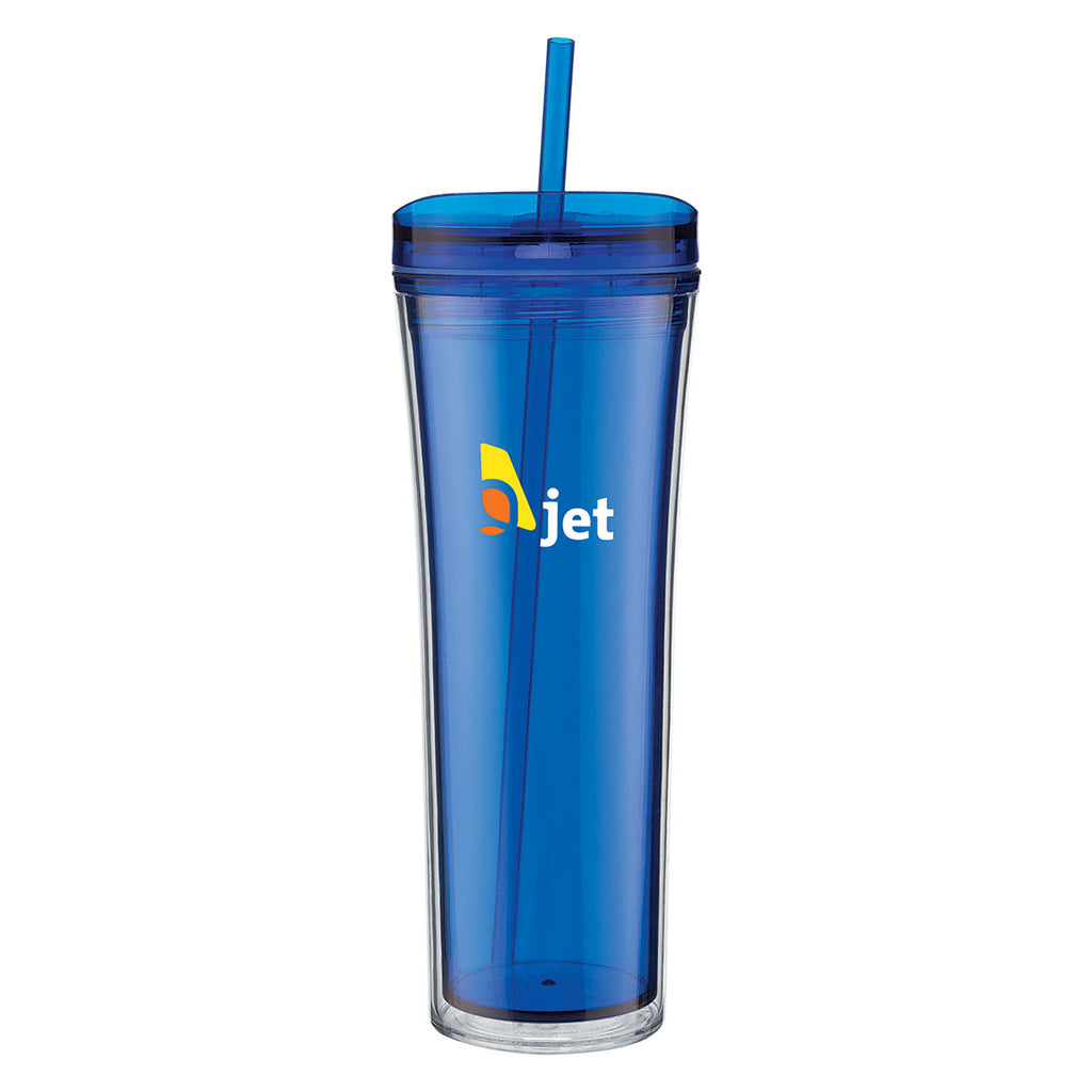 Featuring a slide-button lid and boasting a double-walled build, this ETS Blue Boost Acrylic Tumbler 20 oz will keep hot drinks hot and cold drinks cold. Ideal for corporate gifts or commemorating special events, this tumbler with color inner and clear outer wall can be customized with a company logo. Comes with a straw.