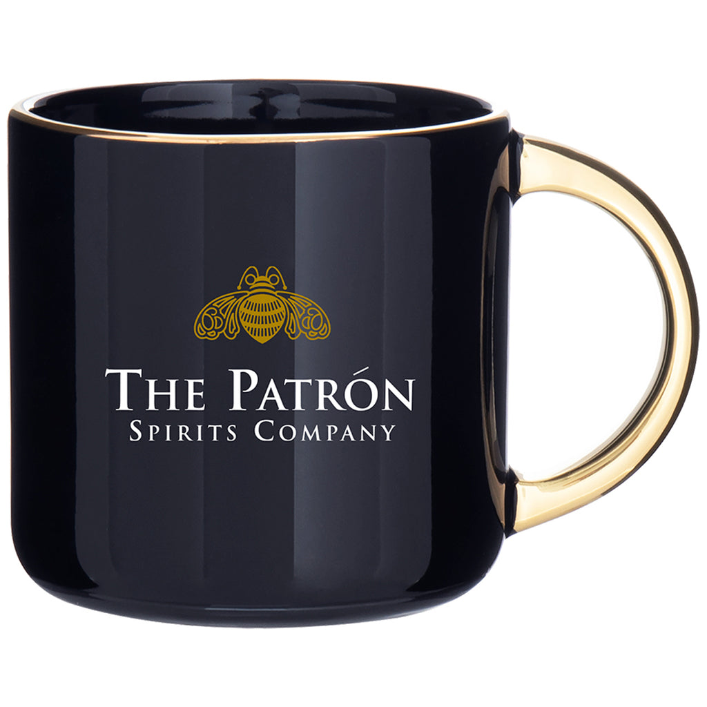 The printed ETS Navy/Gold Minolo-Metallic 14 oz Mug is an excellent sized mug to enjoy your daily hot drink. The gorgeous mug gives off a high-end vibe with a metallic rim and handle that is easy to recognize. Add your company logo to use as a customer giveaway or a prize at a trade show to help people remember your name and your style. Try out a new custom logo to add to your available products or to show support for a specific organization, team, or cause. The possibilities are endless for this mug that all can appreciate. Place an order today.The minimum order for this product is 72 pieces.