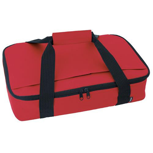 The annual company picnic is right around the corner. You have decided to make the casserole that your co-workers love. The problem is not delivering a sumptuous meal, but delivering a sumptuous meal hot out of the storage case. Koozie has created the Koozie Red Hot and Cold Kooler to keep your casserole piping hot throughout its journey. Fit a standard size pan inside of the insulated storage unit for convenient transport of both hot and cold foods. The front slip pocket allows you to bring along accessories such as a spatula and knives. Attach your corporate logo to the cooler for increasing awareness of your brand at outdoor social events.