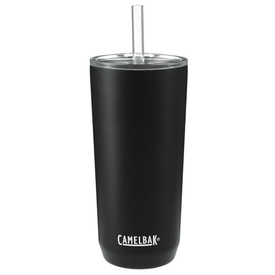 Enhance your beverage experience with the CamelBak Black Straw Tumbler 20oz, boasting a sleek and angular design that is both visually striking and ergonomically comfortable. Featuring double-wall vacuum construction with copper insulation, this tumbler excels in temperature retention, keeping drinks hot for up to 8 hours and cold for up to 24 hours. Its advanced construction also prevents condensation, ensuring a sweat-free exterior.