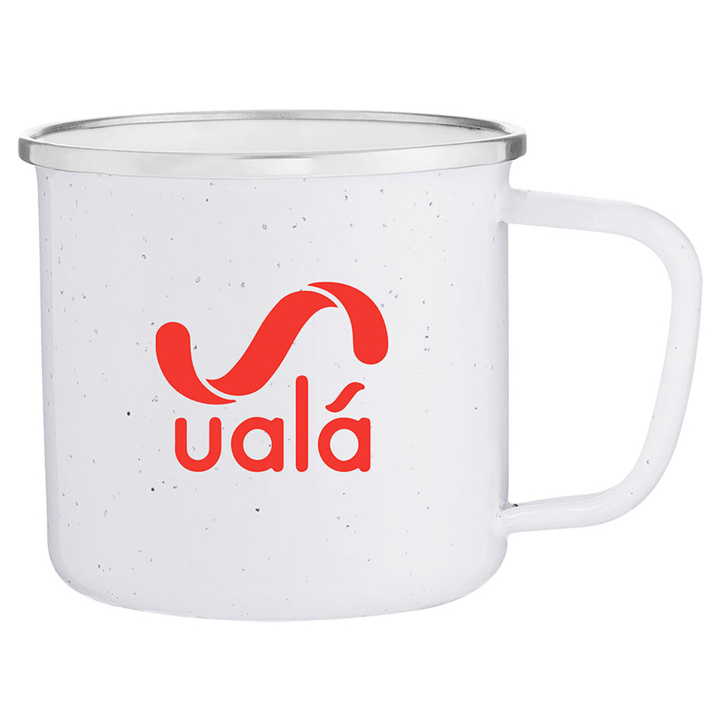 The ETS White 13 oz Whitney Mug is perfect for camping, picnics, ideally for warm drinks, soups, cereal and more. This mug has a glossy color outside, glossy white inside, 18/8 stainless steel rim, and a speckle design. Comes with 1 custom color imprint per mug, this is great for company giveaways and welcoming gifts for new employees.The minimum order for this product is 48 pieces.