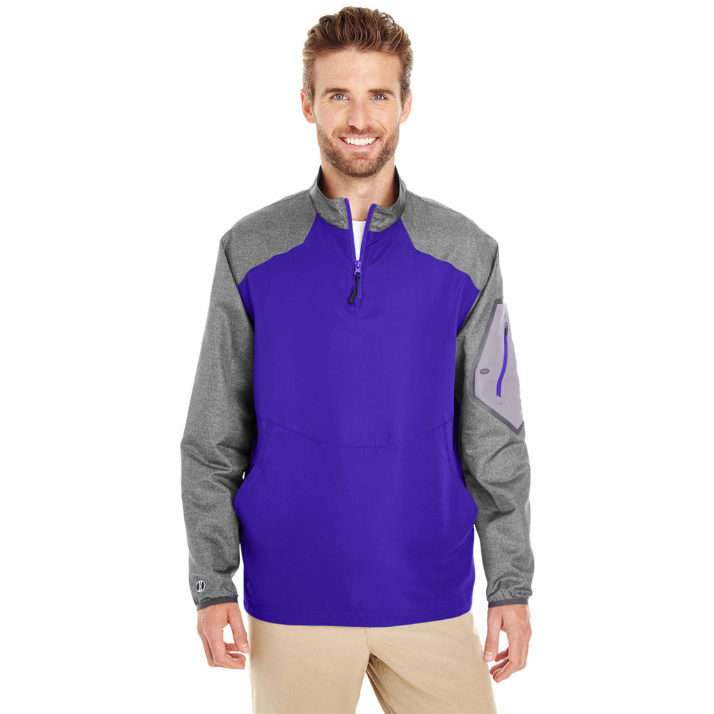 With spandex bound cuffs, the decorated Holloway Men's Carbon Print/Purple Raider Pullover provides you with increased hand and wrist mobility. Additional hand and wrist mobility allows you to tackle the most difficult outdoor home improvement projects. The sleek quarter-zip neckline and silicone welded and laser cut sleeve pocket create visual appeal that makes the jacket stand out in a crowd. Dry-Excel maze mesh inserted at the shoulder improves interior ventilation. Lightweight 100% polyester Aero-Tec fabric resists rips and tears to withstand the abuse dished out by high-energy outdoor recreational activities. Add a custom logo to generate buzz for your company.Highlights