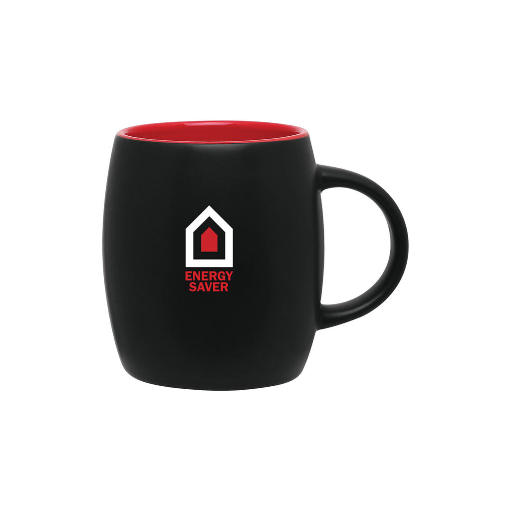 Enjoy your favorite beverage in this ETS Black/Red Joe Ceramic Mug 14 oz shaped like a barrel. It flaunts a matte black exterior and glossy interior. Add your logo imprint on it and gift the personalized mug to clients and employees to give them a hydration message and also to expose logo to your target market.