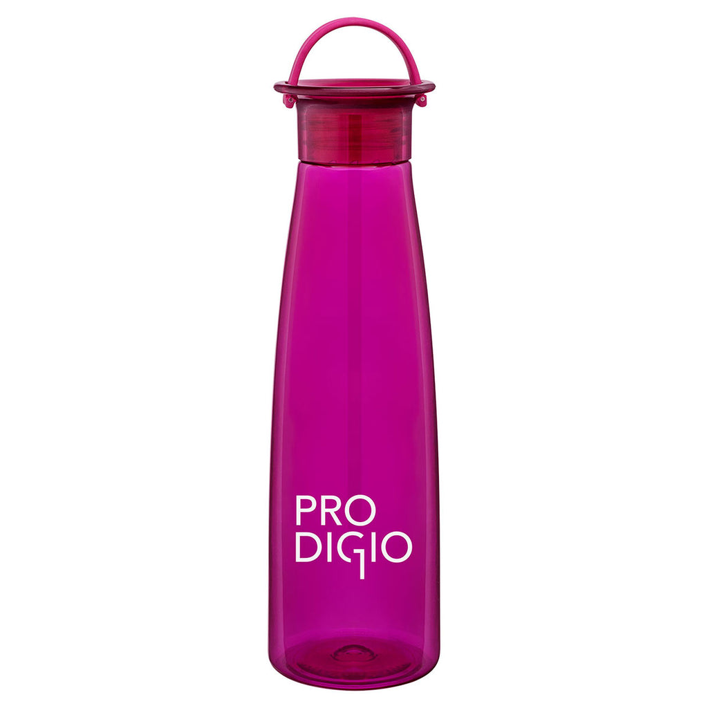 The H2Go Fuchsia Sway Bottle 25 oz is eye-catching drinkware with a cutting-edge look that will keep your company name in people's minds. Order a bunch decorated with your corporate logo and hand them out at sponsored events. The colorful copolyester material will make this bottle stand out among all the others at the health club. The minimum order for this product is 48 pieces.Highlights