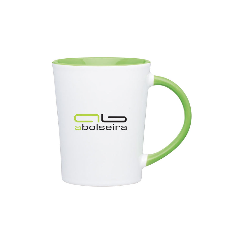 Featuring contrasting glossy hues, this sleek ETS White/Lime Emma Ceramic Mug 14 oz makes a great kitchen addition and equally stands tall when it comes to customizing it with a logo for corporate gifts or giveaways. It has 14oz. functional capacity and interior matching handle. Suitable for the rigors of both indoor and outdoor use.