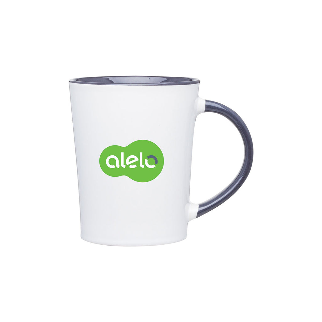 Featuring contrasting glossy hues, this sleek ETS White/Storm Grey Emma Ceramic Mug 14 oz makes a great kitchen addition and equally stands tall when it comes to customizing it with a logo for corporate gifts or giveaways. It has 14oz. functional capacity and interior matching handle. Suitable for the rigors of both indoor and outdoor use.