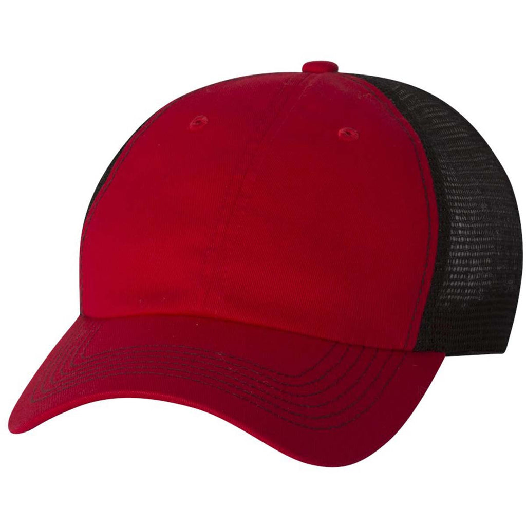 Create a custom classic with the Sportsman Red/Black Contrast Stitch Mesh Cap in a variety of color combinations. Made of cotton and a polyester bio-washed twill front and mesh back, this cap will be an instant favorite for most. The unstructured, six-panel, low-profile fit has a pre-curved visor with matching undervisor and sewn eyelets for a classic cap look. Add a custom embroidery to have custom headwear people will want or a company logo to use this as part of employee apparel. The self-fabric, tri-glide buckle closure means adjusting the size of this cap is a breeze.Highlights
