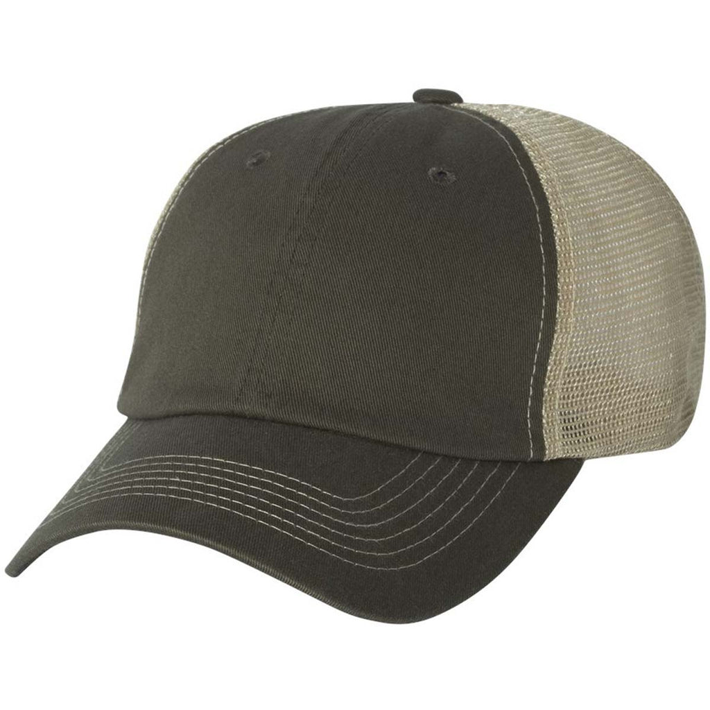Create a custom classic with the Sportsman Olive/Khaki Contrast Stitch Mesh Cap in a variety of color combinations. Made of cotton and a polyester bio-washed twill front and mesh back, this cap will be an instant favorite for most. The unstructured, six-panel, low-profile fit has a pre-curved visor with matching undervisor and sewn eyelets for a classic cap look. Add a custom embroidery to have custom headwear people will want or a company logo to use this as part of employee apparel. The self-fabric, tri-glide buckle closure means adjusting the size of this cap is a breeze.Highlights