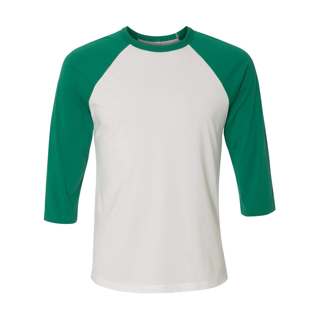 For your company softball team, order the Bella + Canvas Unisex White/Kelly 3/4 Sleeve Baseball T-Shirt. The unisex sizing makes this t-shirt the one-stop fashion statement for savvy shoppers. Designed with 52% cotton and 48% polyester, this t-shirt does a great job of wicking perspiration from the skin to keep you cool during the most intense moments of a game. Contrast raglan sleeves and neck trim make the baseball t-shirt an aesthetically appealing part of your recreational wardrobe. Some versions of the t-shirt contain rayon, which bolsters the performance of the t-shirt for more arduous physical activities. Add a creatively designed company logo on the large imprint area.Highlights