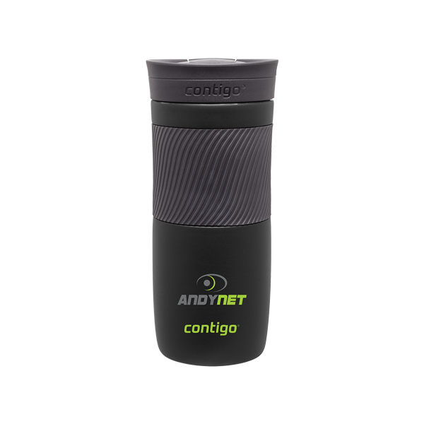 Shiny stainless steel only tells a part of the design story that defines the Contigo Matte Black Byron 16 oz. Bottle. The thick exterior of this Thermalock vacuum insulated travel mug resists impact and moisture damage. Stainless steel also represents the ideal surface for attaching a customized logo to promote your company. Take this stylish travel mug on work commutes or attach it to your bicycle.