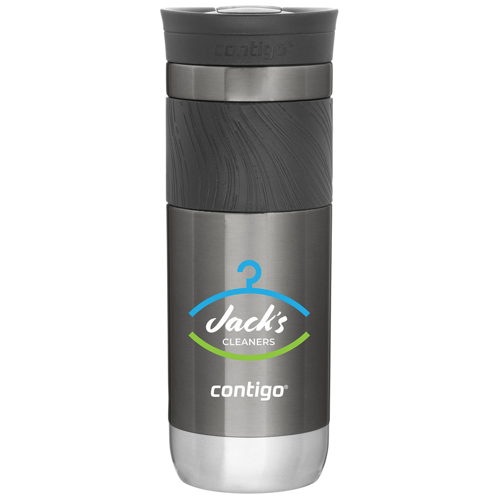 Your printed logo will pop on the Contigo Gun Metal Byron 20.0 oz 2.0 Tumbler. This 20 ounce double wall stainless steel tumbler offers vacuum insulation with a SNAPSEAL threaded lid to keep your drinks warm or cold as needed. The silicone grip and stainless steel base make this great for the morning commute, a long day at the office, or a quick workout between errands. Add accompany logo to the tumbler to use as an employee appreciation gift that can be used at work or home or try out a custom logo to use as an event giveaway to those willing to support the cause. Place an order today.The minimum order for this product is 48 pieces.